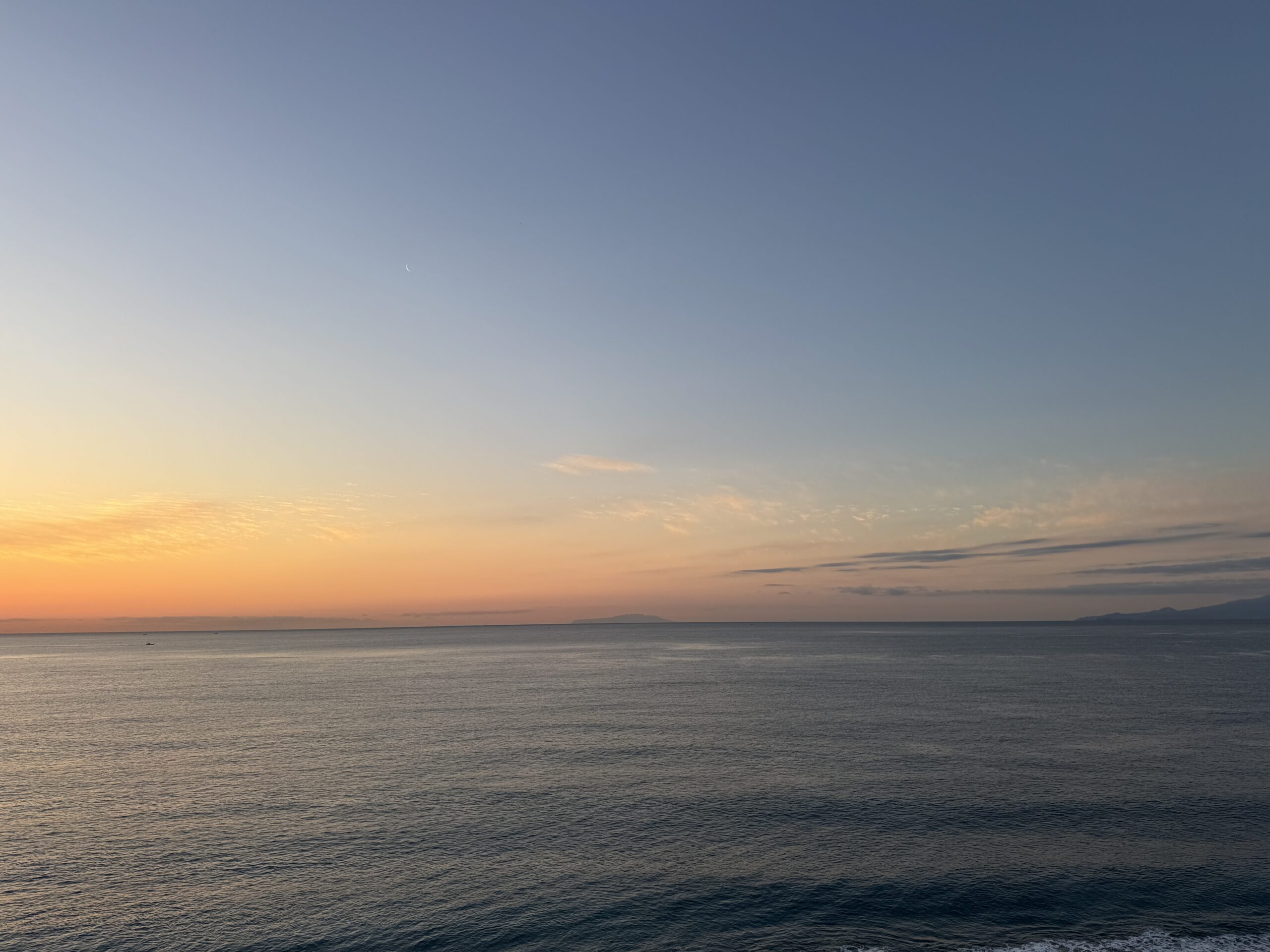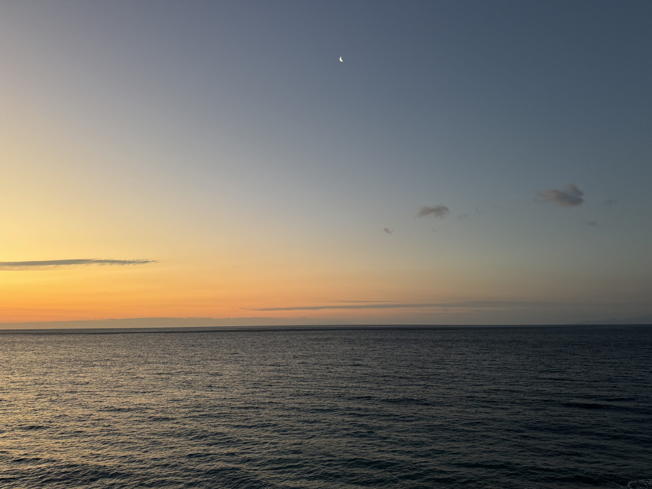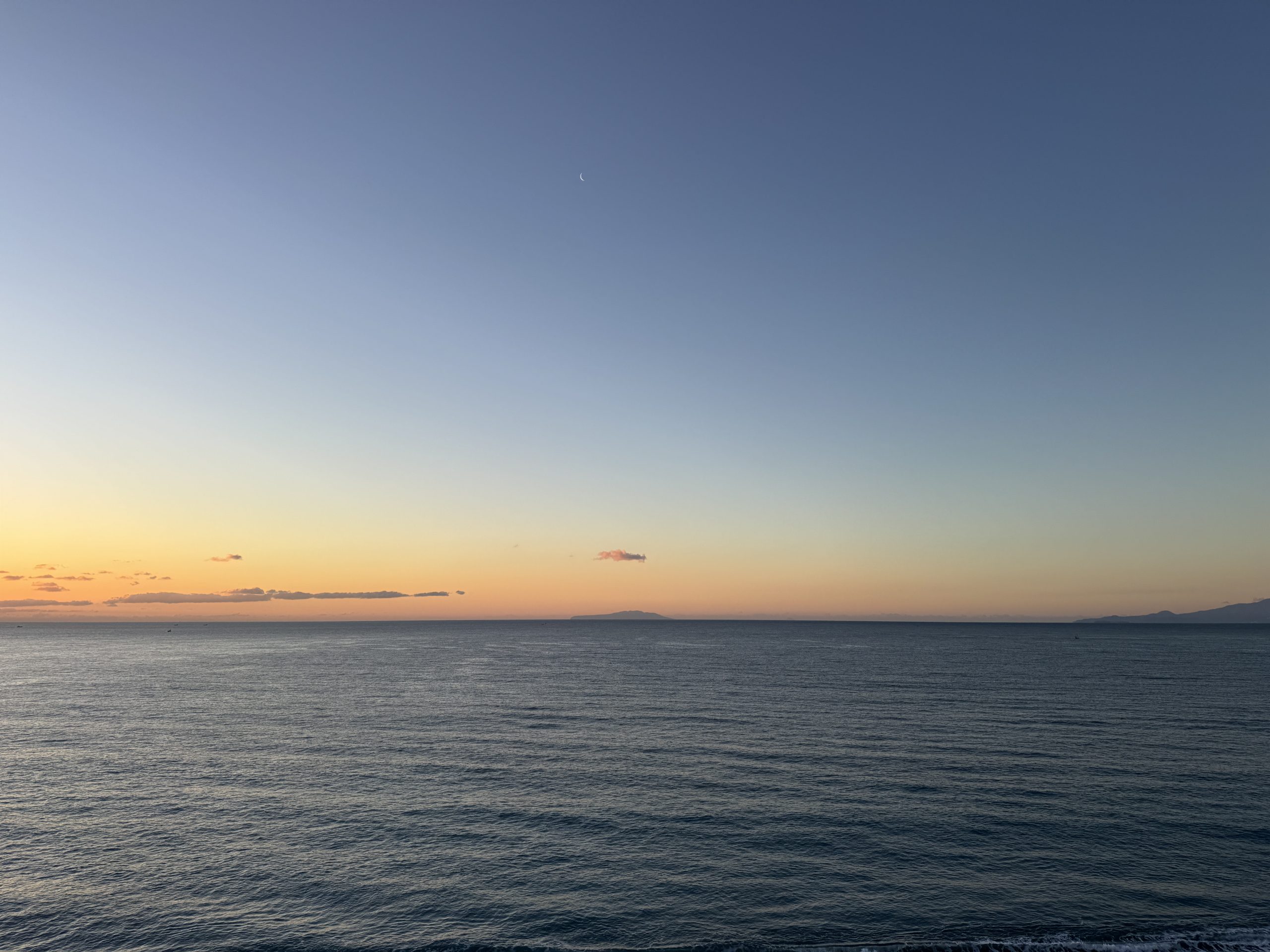 おはようございます。 夜明けの空に、まだ三日月が残っていまし…